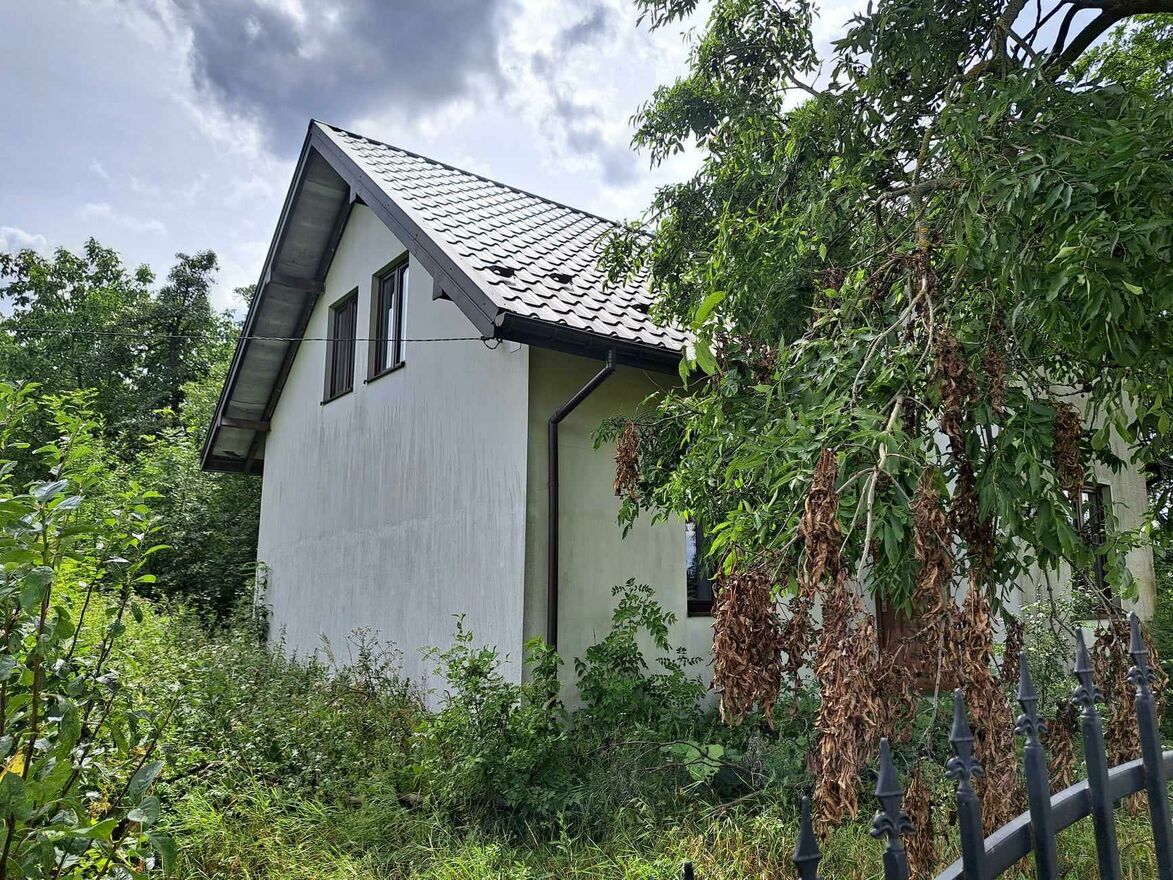Dom o pow. około 160 m2 w stanie do wykończenia (stan surowy zamknięty). Dach kryty blacją, okna plastikowe. Do domu doprowadzony prąd, woda w drodze gminnej w odległości kilku metrów.